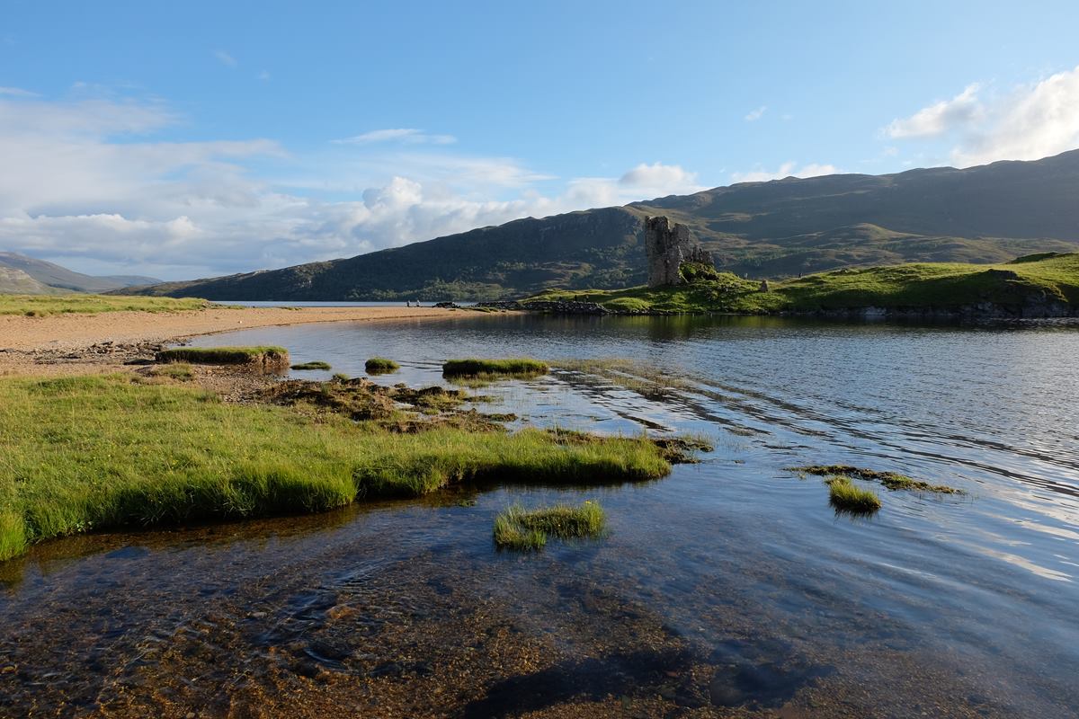 Ardvreck Castle is an isolated ruined castle on the shores of Loch Assynt. The castle dates back to the 16th century and was destroyed by Clan Mackenzie in an attack in 1672. The ruin is worth a stop as you head to the far northern reaches of the Scottish highlands. You can walk around the ruin and admire the scenery of Loch Assynt. The site also has free parking.